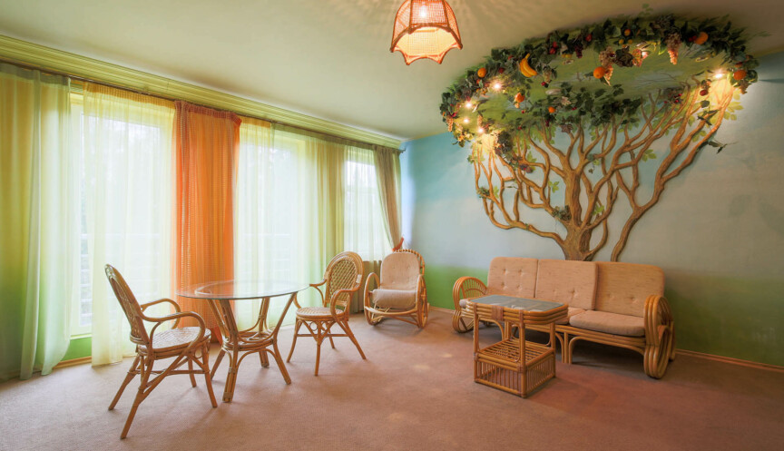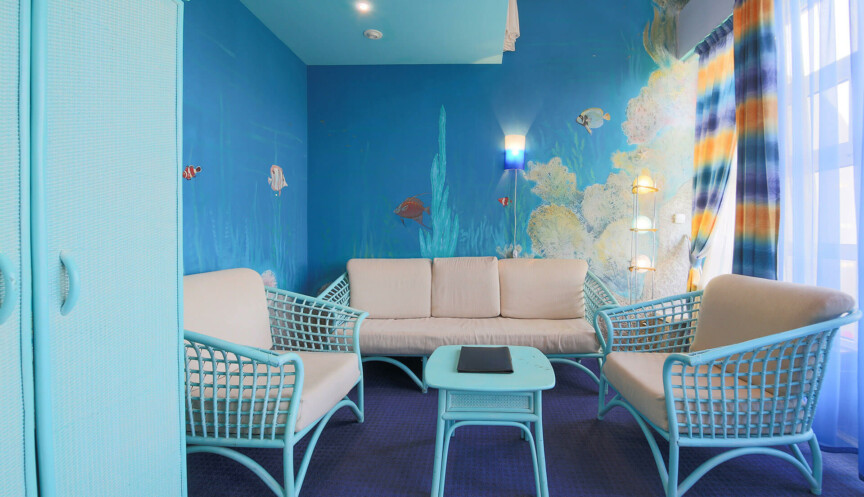 — Фруктовая фантазия — салатовые и светло-коричневые оттенки в оформлении номера переносят в тропическую фруктовую сказку;