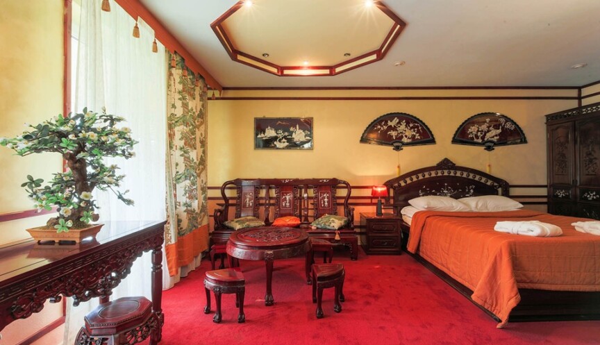 Номера категории «Люкс тематический» — это номера, выполненные в авторском стиле по разным мотивам, от свадебного украшения до джунглей. Каждый номер уникален, все они представлены в единственном экземпляре. Номера представлены по следующим темам: